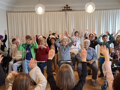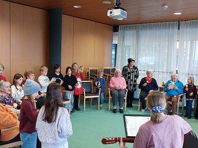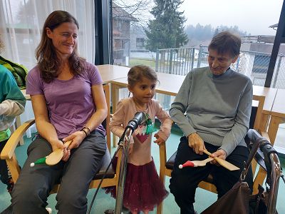 Am Mittwoch, den 17.12. durften die Leondôspatzô bei der Weihnachtsfeier im Sozialzentrum dabei sein. Gemeinsam mit musikbegeisterten Bewohnern und Ramona Dür probten wir 4 intensive Wochen lang für einen gelungenen Auftritt. Klassiker wie Oh Tannenbaum, Kling Glöckchen und The Little Drummer Boy, aber auch moderne Lieder wie In der Weihnachtsbäckerei und Auf dem Weihnachtsmarkt durften nicht fehlen. Mit - unter anderem selbstgebauten - Instrumenten wurden die Stücke begleitet. In der Probenzeit war es schön zu beobachten, wie die Kinder und die Bewohner des Sozialzentrums miteinander musizierten und sich gegenseitig unterstützten. Dabei entstanden auch so manche lustige Gespräche und alle hatten eine schöne Zeit. Danke Ramona, dass du dieses Projekt initiiert hast. Die Leondôspatzô wünschen nun allen Frohe Weihnachten und einen guten Rutsch ins neue Jahr!